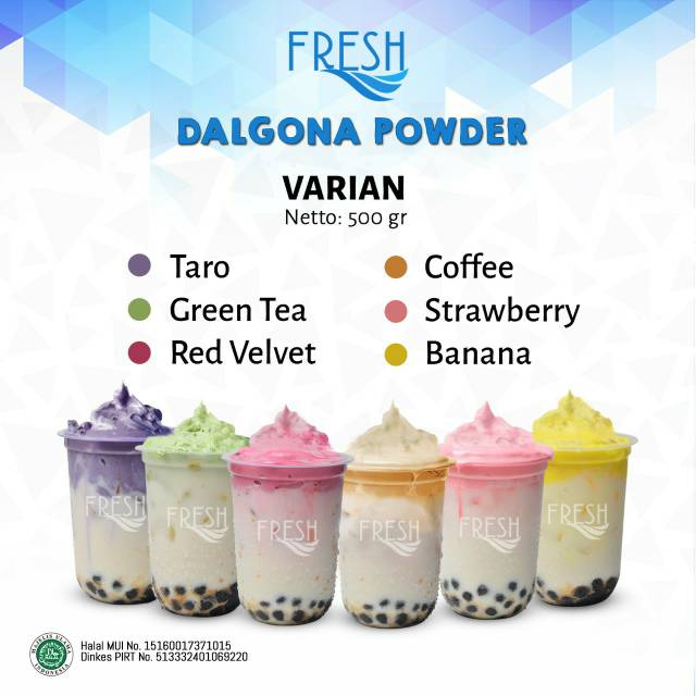 Bubuk Dalgona Powder Fresh Rasa Taro Green Tea Red Velvet Coffee Strawberry Banana Shopee Indonesia